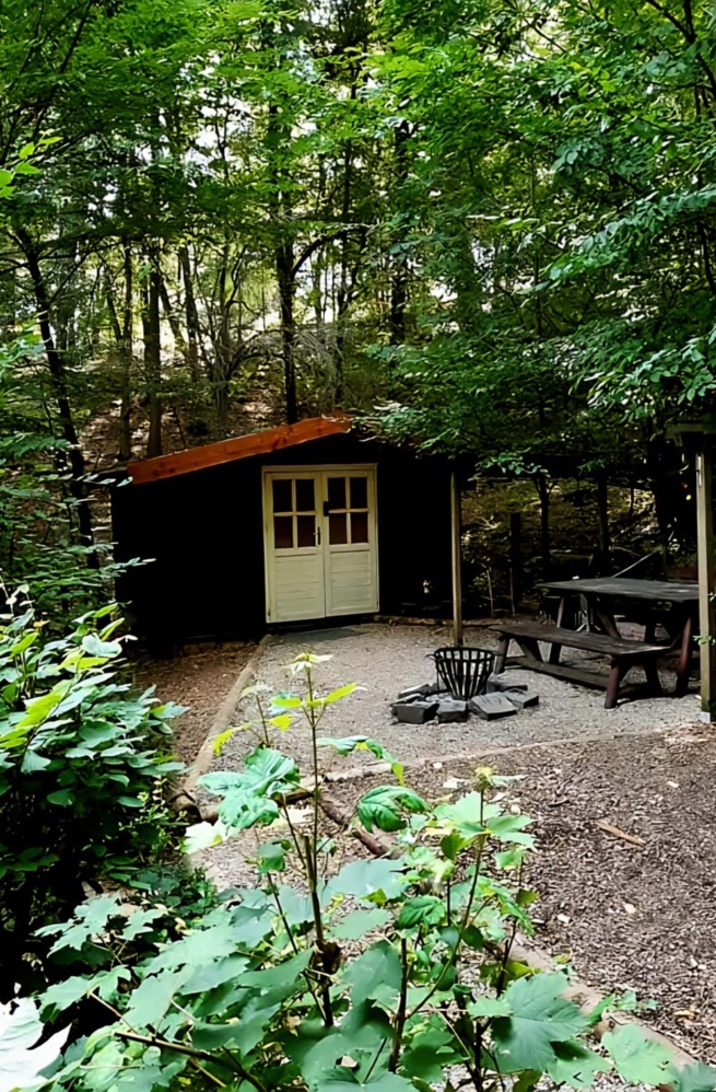 Het boshuisje is van alle gemakken voorzien. Op de bovenste etage vindt u de woon/ eetkamer en keuken. De woonkamer is voorzien van een plavuizen vloer en een heerlijke houtkachel, welke een zeer aangename warmte geeft op koudere dagen. Voorts staat er een grote eettafel met bijpassende stoelen, en een comfortabele zithoek. Ook zijn een aantal boeken en spellen aanwezig, naast audio- en TV apparatuur met Nederlandse en Belgische TV via NL-Ziet. Kortom: alle ingrediënten zijn aanwezig voor een ontspannend verblijf.